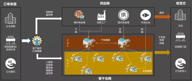 某知名全品类餐饮供应链平台,于2016年正式上线,主要为商家提供包括米面粮油、酒水饮料、调料酱菜、肉禽(冷冻)、方便速食、厨具等标准化程度相对较高的产品以及叶菜类、水果、肉禽(鲜肉)等非标的生鲜产品,此外还包括鸡蛋、豆腐等。渠道除了该平台,还有微信小程序、外卖等多样化第三方平台渠道接入中小餐饮从业者,同时也为C端生鲜供货。