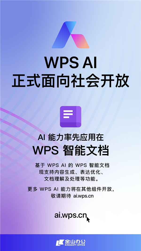 WPS AI正式面向社会开放 率先应用在WPS智能文档