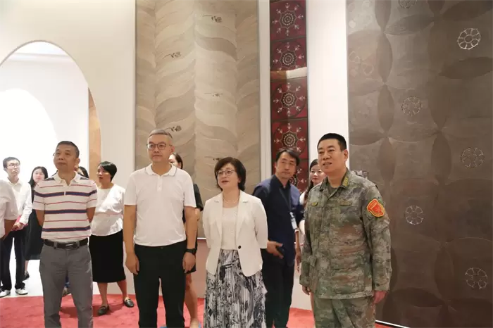 杨春花一行参观书香门地集团企业文化展厅、美学生活馆,了解书香门地集团发展历程、美学地板跨界融合及匠心智造等相关情况,零距离接触美学地板,感受“中国智造”与“美学设计”的独特魅力。美学展厅艺术长廊内,施华洛世奇水晶、铜艺、彩贝、玉石、花草等材料融合美学地板得到来访领导们的高度评价。