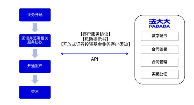 由于投资管控的合规要求,在基金账户开通的过程中,往往会涉及多份协议的签署,如【客户服务协议】、【风险提示书】、【开放式证券投资基金业务客户须知】等,通过将法大大新一代数智化签约管理平台集成在原有的基金账户开通流程中,不仅可以实现从实名认证到合同签署的全流程线上完成,便于后期协议管理和协议调用;还能够提供全流程的证据保全,用于纠纷时的举证。