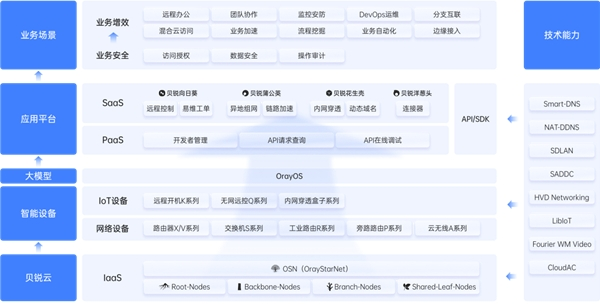 即以贝锐云为基础,结合硬件设备与系统,在一系列自研算法和技术的加持下,形成可软硬结合的一系列专业应用平台,这些平台包括标准的SaaS服务平台,也包括可进行二次开发和嵌入的SDK/API服务。