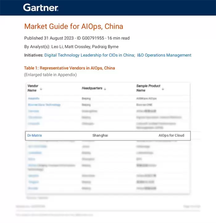 近日,国际知名IT研究机构Gartner发布了《Market Guide for AIOps,China》(以下简称MG报告)。