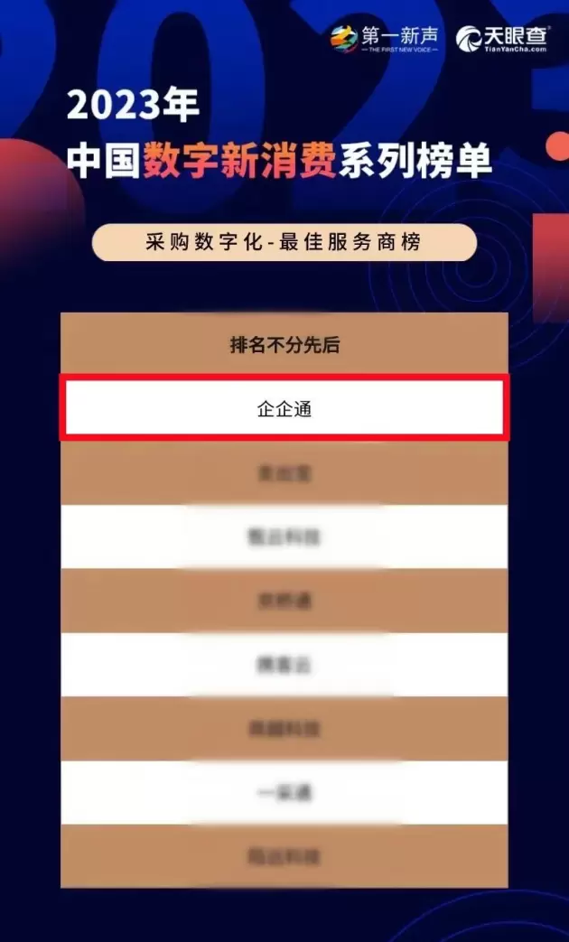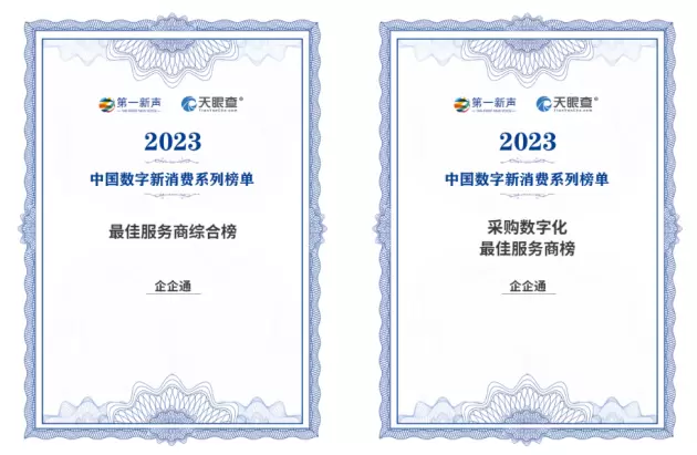 企企通荣登2023年中国数字新消费系列「最佳服务商综合榜」与「采购数字化-最佳服务商榜」双榜单