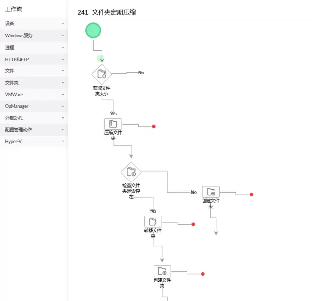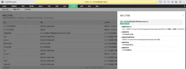 因为服务日志文件夹的增长过快,用户只能每天不定期的检查文件的大小,一旦超过特定值就需要压缩此文件。但这种简单的重复性工作会大大降低运维人员的工作效率,为了帮助企业避免这个现象,OpManager提供了以下工作流。