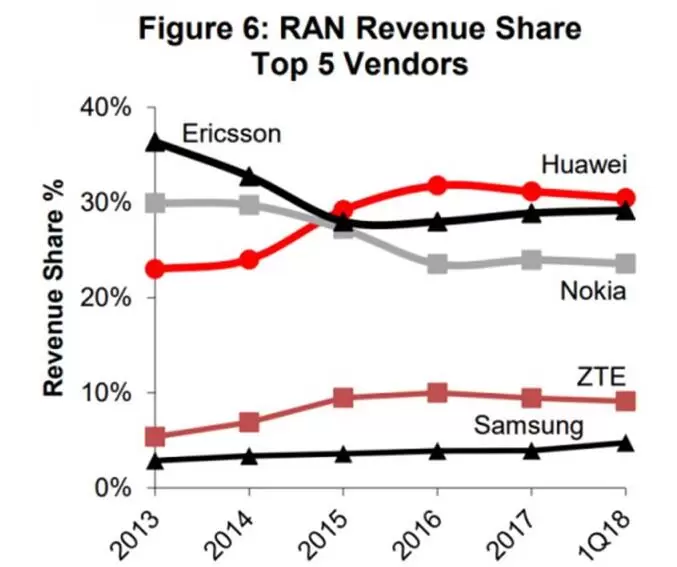 不过,随着技术转型的发展,并非只有传统供应商将会受益,许多细分领域的供应商,包括Acceleran、Airspan、Airvana、康普、京信、Contela、ip. access、Parallel Wireless、Ruckus、Arris、SpiderCloud Wireless和康宁等公司也将从RAN市场增长中受益。