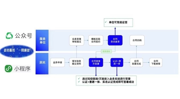 极大地提升人民群众体验:通过合规电子签署能力输出,将传统的纸质合同签署搬到线上,用户直接通过线上渠道完成咨询、业务申请、合同签约,全程在线,省时省心,服务体验倍升。