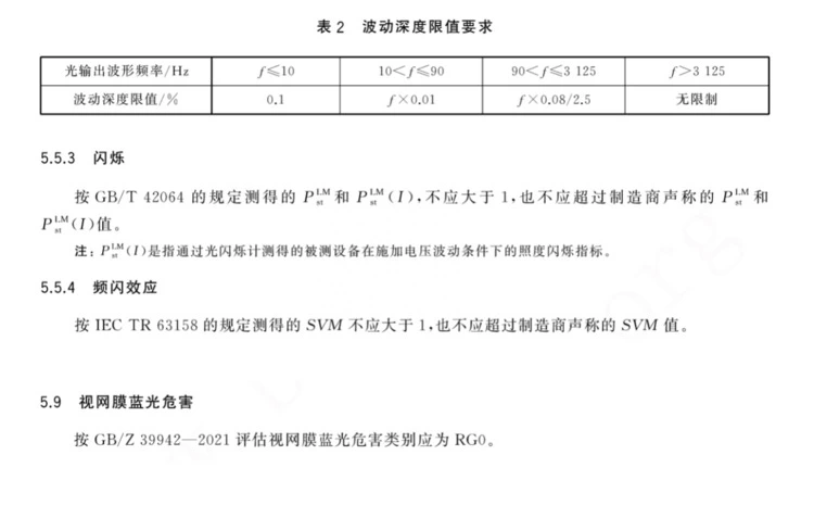 对于蓝光危害的评价要求,新国标延续旧国标对蓝光的要求:无风险类(RG0类)等级要求。