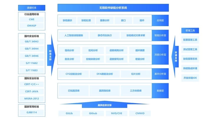无瑕软件缺陷分析系统是自主研发的源代码静态分析工具,结合深度软件分析方法和深度学习方法,能够检测到大量已有软件安全测试工具无法检测的深层安全漏洞,并有效消除大量误报。