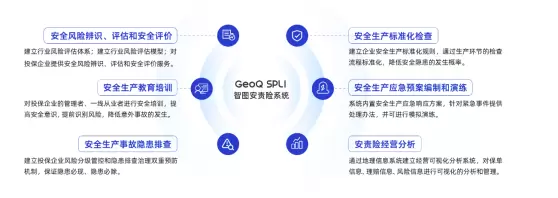 GeoQ SPLI基于捷泰天域在安责险事故预防服务领域的丰富经验,为生产经营单位的安全生产管理提供信息化闭环管理体系,构建集风险评估、教育培训、隐患排查、应急演练、监测预警等服务于一体的整体服务系统,为提升投保单位的安全生产管理意识和水平铺设道路。