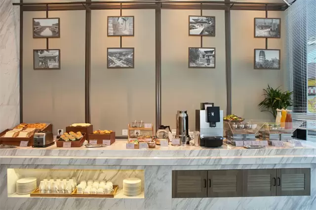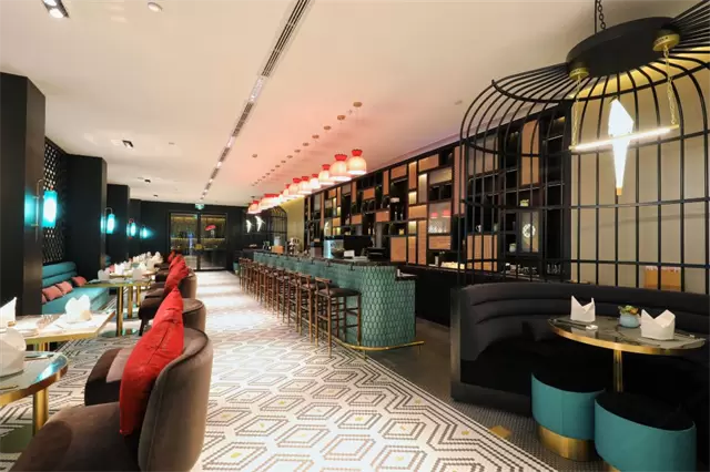 在酒店大堂内,受传统中国文人喜爱的鸟笼以新颖鸟笼吧的形式呈现,营造灵活开放的商务洽谈空间;更结合当地文化元素的澄灵塔壁画元素,充分展现中西文化特色,为旅客带来与众不同的场景体验。