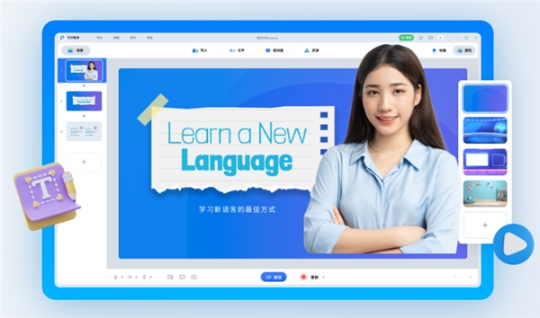 课件制作方面,用户仅需输入项目主题关键词,便可一键AI生成大纲。用户确认大纲、选用模板即可调用AI自动生成演示文档。此外,用户也可通过自选模板、拖拽素材、填充内容,搭积木式完成演示文档的创作。通过多场景多样式的演示模板及丰富的动画特效素材,万兴智演可有效提升演示文稿的互动性,为泛知识领域带来全新的创意体验。