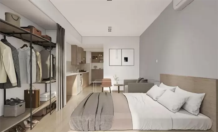 公寓为租客提供了28平米的“舒适单房”、42平米的“轻奢单房”、48平米的“舒阔行政单房”;·主打简约、时尚、温馨的“MUJI”设计风格,客、卧、厨完美结合;·品牌家私家电一应俱全,并设置了人脸识别、读卡器、移动网络、公区监控、智能门锁等,生活便捷、居住安全;·配有570平米公区,包括公共洗衣、休闲会客区、健身房私教室等功能区。