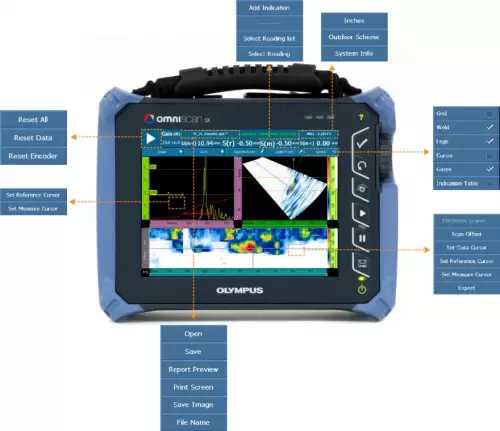 奥林巴斯便携式相控阵探伤仪Omniscan SX PA不仅体现了Omniscan仪器的精华,还拥有非常方便的操作方式,为Omniscan SX PA配置了简化的新型软件界面,全屏模式提高可视性,许多菜单功能也能直接通过触摸屏来简单进行操作。在使用Omniscan SX PA便携式相控阵探伤仪进行焊缝检测时,用户可以在直观的用户界面中轻松进行菜单选择、闸门调节、光标移动等等,还能轻松输入文本及参数值,对于新手检测人员来说也能轻松上手,实现焊缝缺陷探测。
