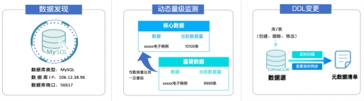 为了灵活应对不同数据特征和变化的环境,更准确地对数据进行分类和分级,缩短数据流动中的安全风险窗口。暗数据发现和数据分类分级系统在数据源自动发现的基础上,通过动态量级监测、DDL变更能力,实现对资产的动态、持续化感知。