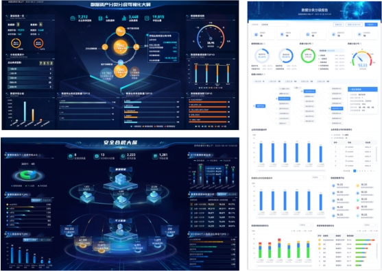 暗数据发现和数据分类分级系统支持数据发现与分类分级结果的可视化能力,提供全局视角、内容丰富的数据分析报告和可视化大屏。
