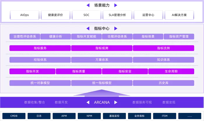 可观测指标中心解决方案定位于大数据平台之上,对企业运维和运营数据的集中纳管和健康分析,提升指标数据的质量,降低指标应用建设的难度和成本。