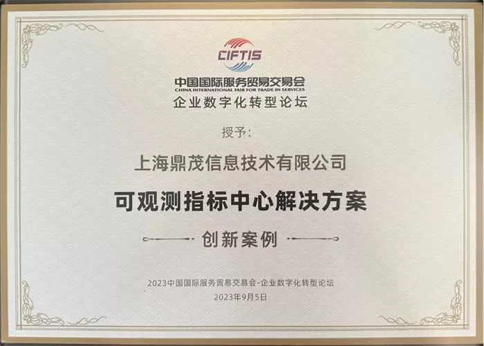 鼎茂科技【可观测指标中心】获2023国际服贸会创新案例奖