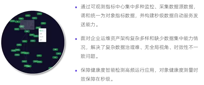 通过可观测指标中心解决方案,可以提高企业数据资产的可观测和应用能力,并实时了解所管理IT对象的状态、性能和健康情况,提高有关问题诊断和优化洞见的准确性、实时性。
