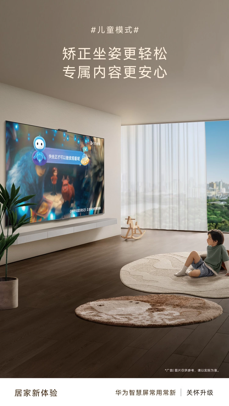 对于有娃家庭而言,父母渴望通过智能家居产品科学带娃、帮助孩子健康成长,同时也让自己获得更多可以喘息的空闲时间,华为智慧屏曾凭借优秀的“儿童模式”被称为父母的“带娃好帮手”。例如,使用儿童模式下的距离/坐姿提醒功能、护眼模式、控时功能,不仅可以通过AI摄像头识别小孩的不良坐姿,自动弹出弹幕提醒并暂停视频播放,帮助小孩养成正确坐姿的好习惯,还可远程设置孩子观看电视的时长,无需父母再时刻紧盯。此次华为智慧屏在版本迭代后更是加强了“好帮手”的能力,观看儿童频道时可自动切换儿童模式,免去操作烦恼,同时新增了更适合儿童观看的“绘本、启蒙、英语、动画电影”等栏目,拓展孩子的知识面,同时避免小孩在观看电视时接收到五花八门的信息。华为智慧屏用智能化的手段,多方位呵护儿童健康成长,也减少了“带娃族”时刻盯梢的烦恼。