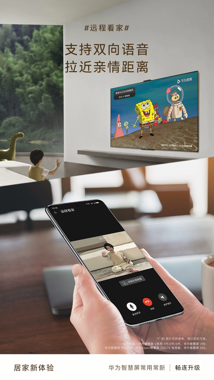 作为家中的C位,电视是联结每个家庭成员的核心枢纽,全新升级的华为智慧屏更是将这一联结突破了空间的限制,并为不擅长用机的老年用户带来了更加充满温度的体验。随着智能电视功能越来越丰富,操作也愈发复杂繁琐,很多老人反馈不会用、学不会,遇到操作上的问题也只能通过打电话来寻求远程指导。为更好地解决老人的用机问题,华为智慧屏新增了远程协助功能,父母通过畅连通话与子女连线,子女即可远程操控、远程设置,解决父母的问题。当你工作繁忙又放心不下家中的小孩或老人时,也可以使用新增的远程看家功能随时查看家中情况,双向语音通话还能让处在异地的双方,随时随地开启“云陪伴”。两大功能的升级,拉近了家人的距离,降低银龄族“孤独感”, 让陪伴变得更简单。