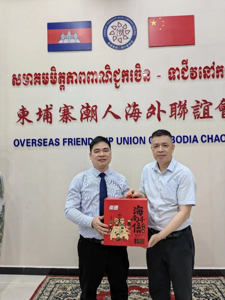 2月22日至25日,南国食品公司采购部经理王争与海南商贸代表团在柬埔寨金边市、西哈努克市参加推介交流活动,王经理拜访了柬埔寨潮人海外联谊会会长江旭忠及相关负责人,就南国产品进入柬埔寨市场寻求合作商机,交换合作意愿。南国食品公司还与柬埔寨侨商投资股份有限公司和V-Shere公司展开洽谈 ,有机会在果蔬干农产品交易上展开合作。