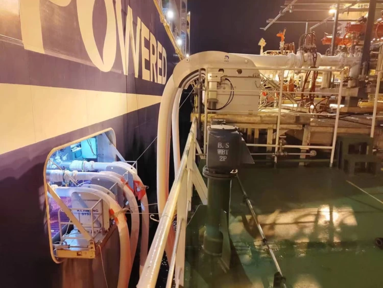 船用转运装备与系统是海上LNG产业链的关键核心系统之一,是用于实现LNG加注终端与LNG受注终端之间LNG货物输送的过驳装置,广泛应用于FSRU、LNG运输船间船船LNG输送,LNG运输船/FSRU与岸站间船岸LNG输送,LNG加注船/LNG动力船/岸站间船船、船岸LNG输送以及卸料臂终端备用船岸LNG输送等领域,实现LNG海上安全快速输送。系统主要包括:软管、船船快速连接/分离装置、主动紧急脱离装置、软管鞍座、防坠落系统、软管鞍座、液压动力单元、电气控制系统。