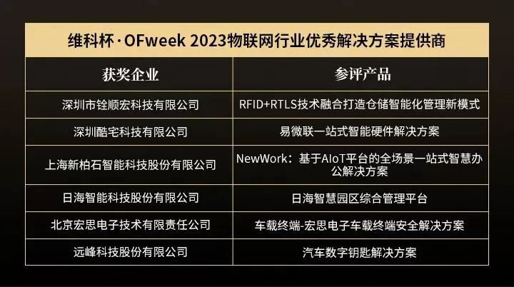 此次年度评选活动旨在表彰物联网与人工智能行业具有突出贡献的优秀产品、技术、解决方案、应用案例及企业,鼓励更多企业投入产品、技术创新;同时为行业输送更多创新产品、前沿技术,以提高生产力和经济效益,增加物联网与人工智能行业整体创造力,从而为用户提供更大便利,引导行业良性快速发展!具体获奖名单公布如下(排名不分先后):