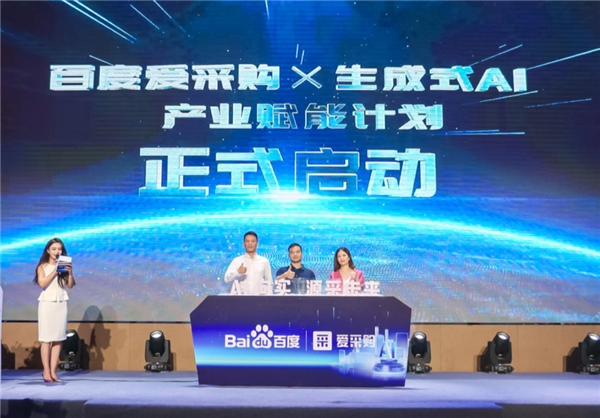 随后,百度ToB垂类事业部技术架构师吕明、百度爱采购业务拓展区域负责人王兴龙、卓企文化传媒有限公司执行总裁井庆妍共同启动了“百度爱采购x生成式AI产业赋能计划”,宣布将把科技前沿的生成式AI工具,通过专题论坛的窗口,带给全国的中小企业,让科技“贴地而行”,在行业“落地生根”。