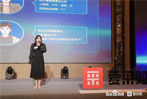 随后,百度ToB垂类事业部市场经理孙牧云就爱采购如何为企业提供技术及资源支持,驱动生意增长进行了深度讲解。在采购商侧,依托百度坚实的AI能力,爱采购为用户提供了高效的采购寻源服务,帮助用户更便捷地链接供应商,提升了用户的寻源决策效率;在供应商侧,爱采购打造了一站式的客户经营方案,满足客户从商品管理、内容生产到店铺经营的全流程需求,帮助客户找到更多的采购商,助力客户经营提效,制胜未来。