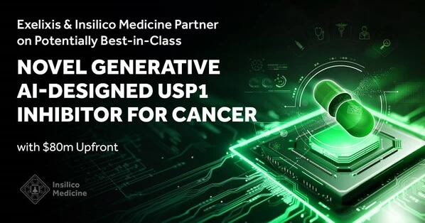 2023年9月12日,Exelixis(Nasdaq:EXEL)和英矽智能共同宣布,双方已签署一项独家许可协议,Exelixis将从英矽智能处获得ISM3091全球开发和商业化权利,ISM3091是一款潜在同类最佳(best-in-class)小分子抑制剂,靶向BRCA突变肿瘤的合成致死靶点USP1。