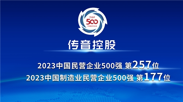 传音控股上榜2023中国民营企业500强、中国制造业民营企业500强