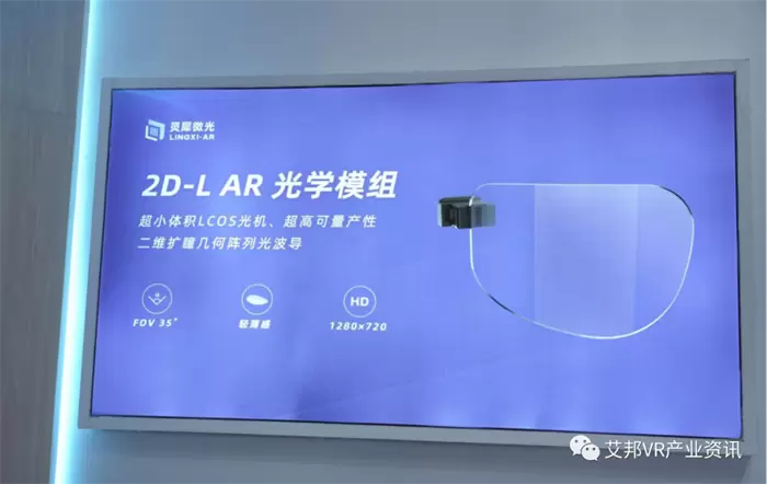 答:2D-L是灵犀微光新品二维阵列光学模组,做这个新品最重要的目标是有两个:第一个是能让AR光学模组非常容易制成像普通眼镜一样形态的 AR 眼镜,跟普通眼镜很类似。因为现在市面上很多类型的AR眼镜迟迟没有进入广大消费者市场,一个重要原因就是它的体积、形态太奇怪了,消费者不愿意戴。我们(灵犀微光)通过制作更小体积、更好显示效果的近眼显示模组,能够让AR光学显示技术真正赋能行业,近而达到普通消费者可携带起来的AR眼镜产品——2D-L 要实现的就是这个目标。