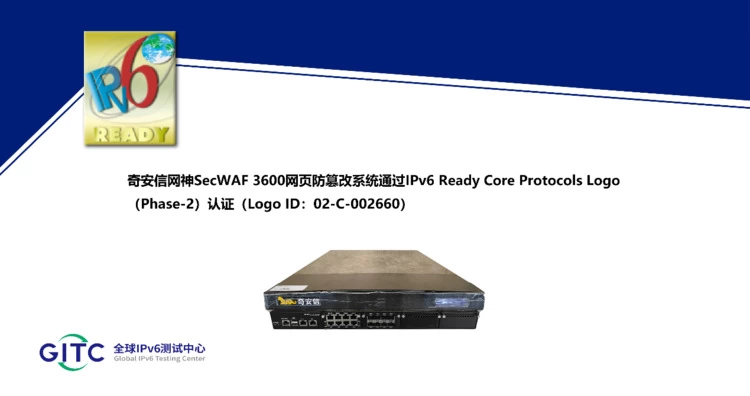 奇安信网神SecWAF 3600网页防篡改系统通过IPv6 Ready Logo认证