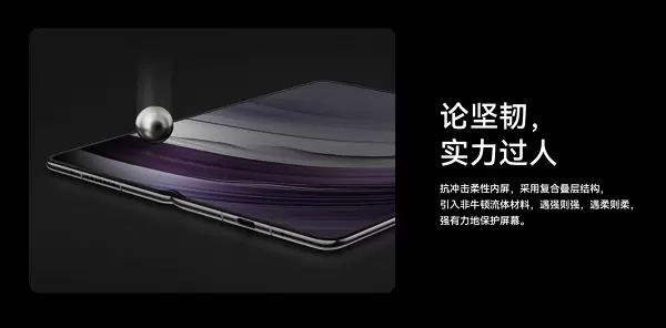 在内屏的可靠性方面,Mate X5采用了抗冲击非牛顿流体材料,此种材料可为折叠屏手机带来“遇强则强、遇弱则弱” 的抗冲击效果;这种材料的运用,让手机在日常生活中无惧瞬间快速冲击造成的屏幕损伤,比如当一串意外滑落的车钥匙落在了展开的手机内屏上时,采用抗冲击非牛顿流体材料的内屏可以瞬间变硬,避免外力冲击造成的屏幕损坏。