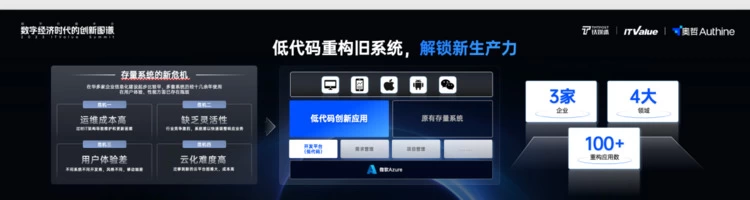 类似的案例还有很多。这是一家外企,当下我们很多国企要实现国产替代,人们普遍认为仅仅替换系统可能业务价值相对有限,但当我们加入统一用户体验、实现数据打通、简化运维并实现可持续扩展时,这是否为我们提供了更多理由呢?通过低代码,我们是否成功地实现了对老旧系统的保值和增值呢?
