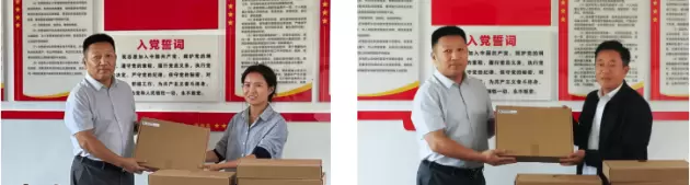 白山云副总裁汝迎庆代表公司,向石甲村和高峰中心小学送出爱心电脑