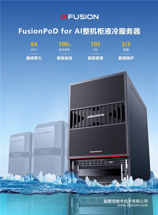 超聚变协同产业链上下游、科研院所、标准协会等持续创新,推动液冷技术的持续迭代和普适性应用,共创共享液冷技术红利,为客户提供价值服务,推出基于原生液冷、总线盲插的一体化整机柜液冷服务器FusionPoD for AI。