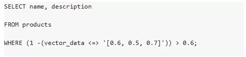 pgvector使用标准SQL查询语言,适合于熟悉SQL查询的用户,而Milvus等专业向量数据库则是提供了自己的查询语言和 API。