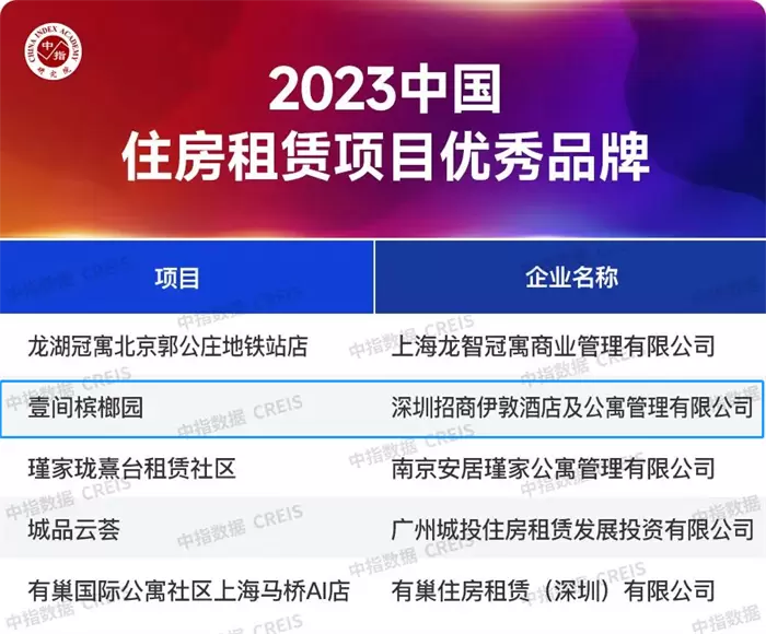 招商蛇口旗下壹间公寓·槟榔园获评租赁优秀项目TOP5!