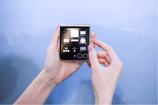 心系天下三星W24 Flip的大视野智能外屏尺寸大幅提升,支持个性化外观定制,表达持有者的专属美学主张。高端时钟动效以无垠星河为主题,浩瀚无穷、深奥无尽,斗转星移间尽显W系列用户心系天下的情怀。通过功能丰富的小组件,可在外屏完成回复信息、拨打电话、查看天气、媒体控制、移动支付等功能。双指捏合,便可进入九宫格视图,点选不同的小组件,完成功能切换;将手掌覆盖机身,即可为来电或闹钟快速静音。