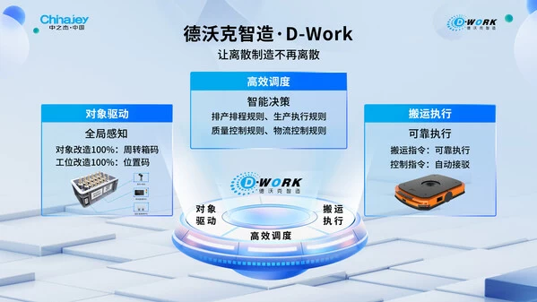 德沃克智造·D-Work定位于未来智造工厂的"神经中枢",运用"一转、双改、双模"的创新技术,以对象为驱动,实时协同以ERP、SRM为代表的顶层信息化大脑,和以机械臂、AGV为代表的底层自动化手脚。同时,内置丰富的调度算法、拉动规则等Know How模型,实现基于现场、现物、现实的自主调度,以精益数智化生产方式,解决汽车及零部件企业协同难、调度难、执行难、管控难、反应慢等业务挑战。