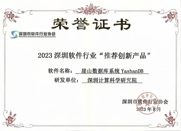 为打造深圳市软件名品库,为深圳市传统行业和“20+8”行业用户提供产品选型参考。近日,深圳软件行业协会公布了2023年第一批深圳软件行业推优评选结果。深圳计算科学研究院(以下简称“深算院”)自主研发的崖山数据库系统YashanDB凭借卓越的创新能力入选“推荐创新产品”。