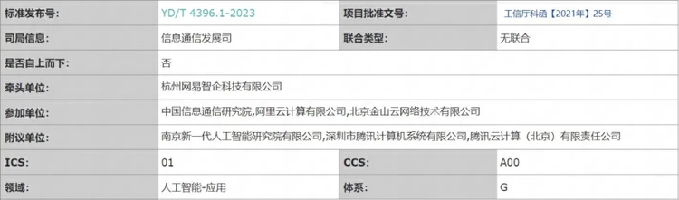 该项标准由网易易盾牵头编写,过程中也获得了行业的广泛响应,包括中国信息通信研究院、阿里云计算有限公司、北京金山云网络技术有限公司作为参与单位辅助编写,南京新一代人工智能研究院、深圳市腾讯计算机系统有限公司、腾讯云计算(北京)有限责任公司作为附议单位提供建议,最终历时三年完成并对外发布,获得了行业的一致认可。