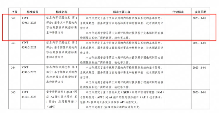 本标准适用于指导第三方测评机构对提供基于文本识别的内容检测服务系统厂商的评估、验收等工作。按照规定,本标准将于 2023 年 11 月 1 日正式实施,易盾公众号将在后续推出系列文章,详细解析该标准文稿内容,欢迎大家持续关注。