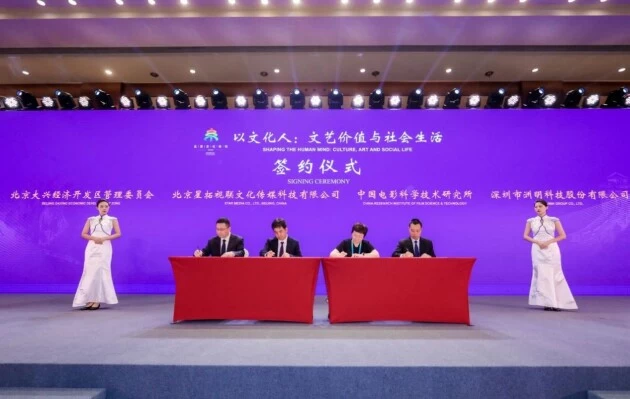 会上,中国电影科学技术研究所、北京市大兴经济开发区管委会、星光影视园、洲明集团合作签约仪式正式举行。