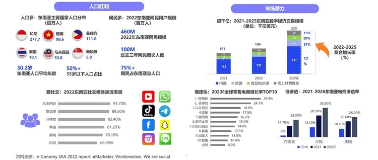预计到2025年,东南亚数字经济规模达3300亿美元,其中,电商为主要推动力,年复合增长率达17%。东南亚国家具有丰富的语言环境、不同的宗教信仰、文化背景及消费习惯,用户需求差异化明显。出海企业需要提供本土化服务、做好本土化运营,不断提升用户体验,实现长效增长。