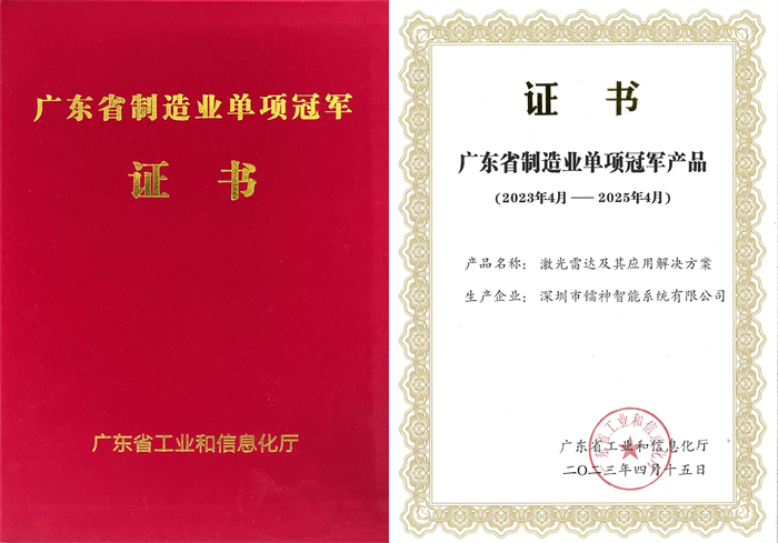 近日,广东省工业和信息化局在深圳隆重举行“2022年省级制造业单项冠军企业(产品)”授证仪式,镭神智能激光雷达及其应用解决方案荣获“广东省制造业单项冠军产品”称号。