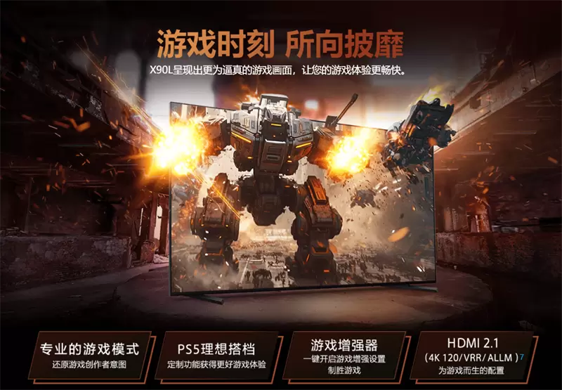 本次亚运会另一大特色,就是电子竞技首次加入正式赛程,这是电竞进一步走向体育化的里程碑式事件。游戏越来越成为人们生活中不可或缺的一部分,索尼全能游戏电视X90L,更是在游戏功能上做了大量的优化。除了专门的游戏模式和PS特色功能外,X90L还额外增添了游戏增强器,包含黑平衡、运动模糊减少,还内置十字瞄准线等功能,能给用户带来更加轻松的游戏体验,制胜全场,所向披靡!