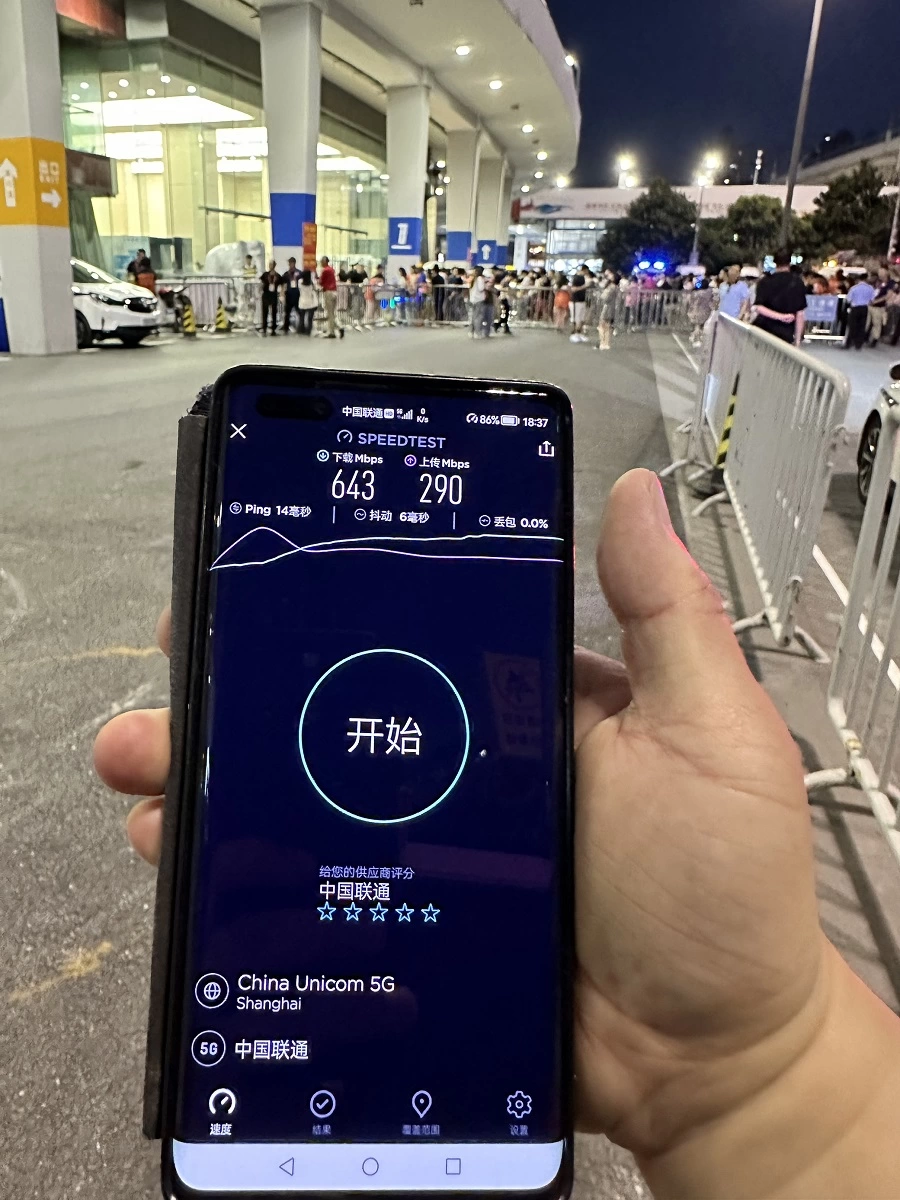 体验无忧:此次演唱会使用了基于用户级的高分辨率的MU-MIMO配对技术,实现演唱会最忙时控制信道容量翻番;业务信道上行配对最大达到8流,下行配对最大达到16流。同时使用了小区间资源协同分配、联合功控及先进的SRS干扰抑制算法,在密集组网强干扰场景下仍能提供极致用户体验。演唱会现测试用户上行速率可达290Mbps,下行速率达643Mbps。