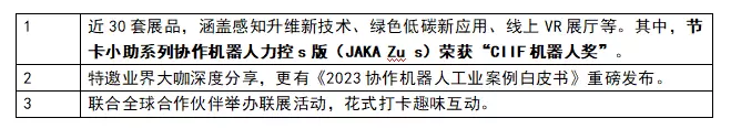 9月19-23日,2023中国工博会隆重举办。节卡机器人(展位号:7.1H E001)围绕“展·讲·玩”三大维度,为观众呈现一场有料、有趣、有新意的展会。